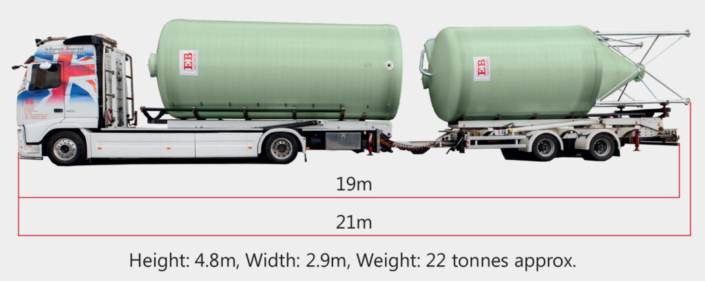2. EB Silos are delivered and installed by vehicles equipped with hydraulic tipping gears which erect the silo onto the concrete base.